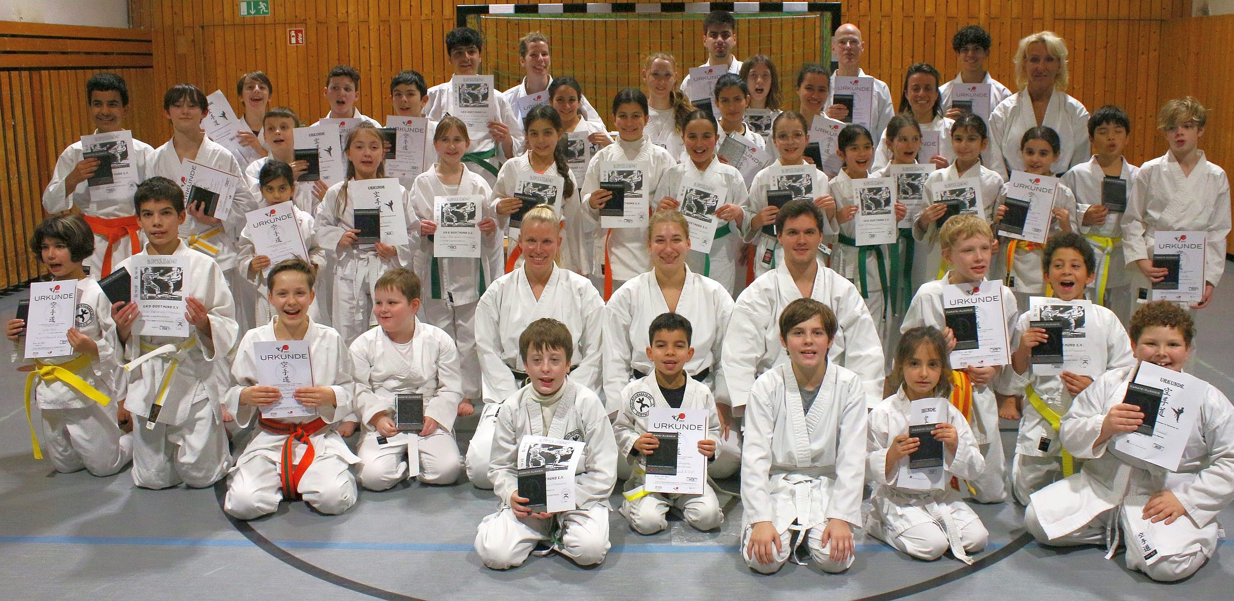 Alle 38 Teilnehmer bestanden die Prüfung mit Bravour und dürfen stolz ihre neuen Gürtelfarben tragen. Jeder erhielt eine wohlverdiente Urkunde als Anerkennung für die hervorragenden Leistungen.